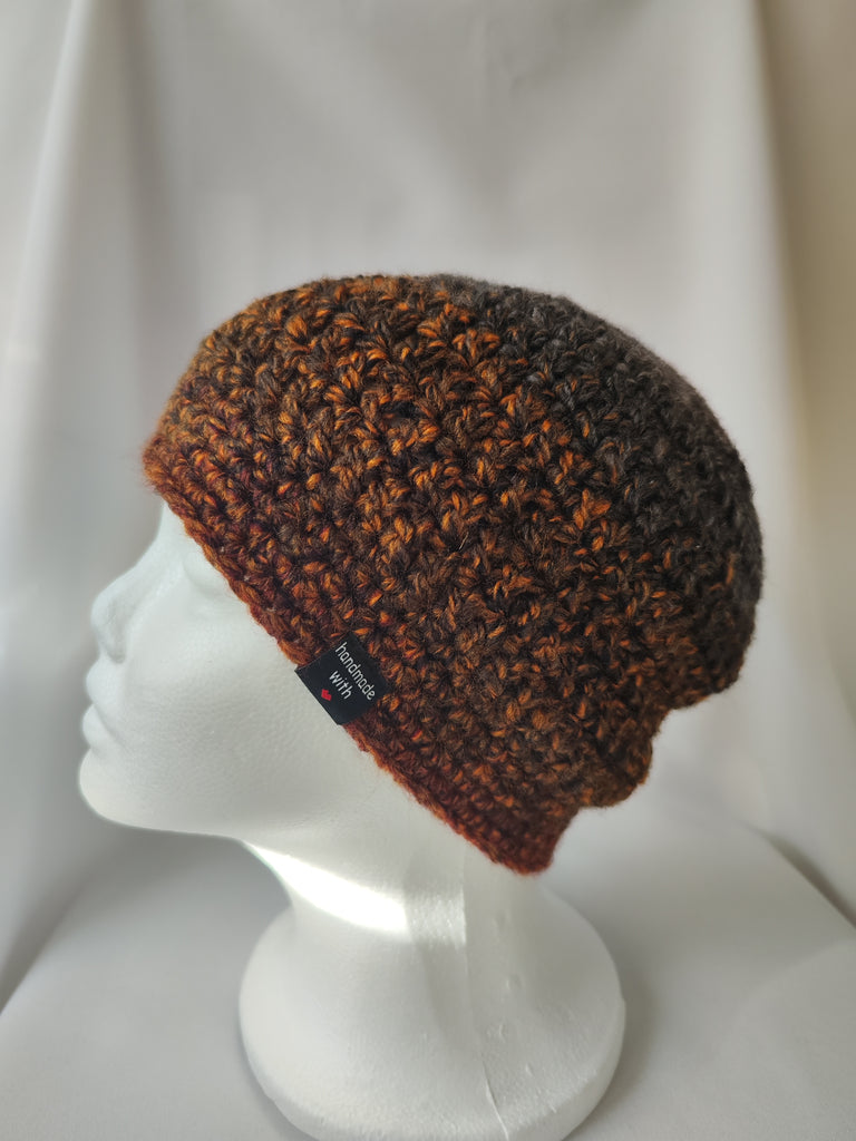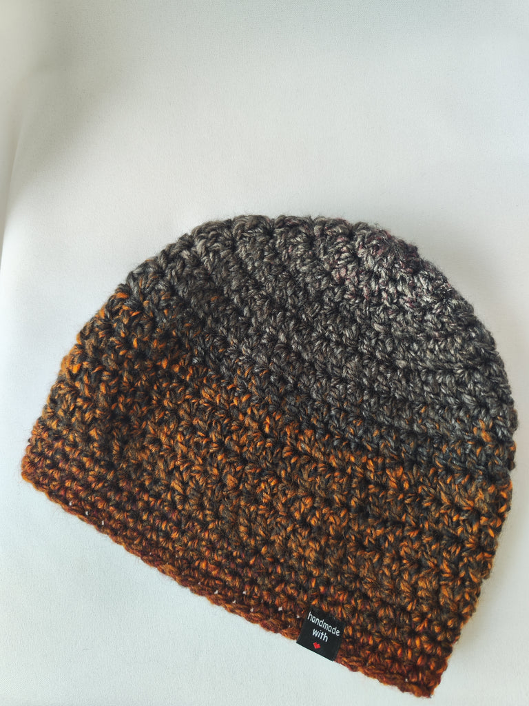 Modna unikatna ročno kvačkana kapa, v prečudovitih barvah oker in sivega melanža. Preplet barv jo naredi prav posebno in unikatno.